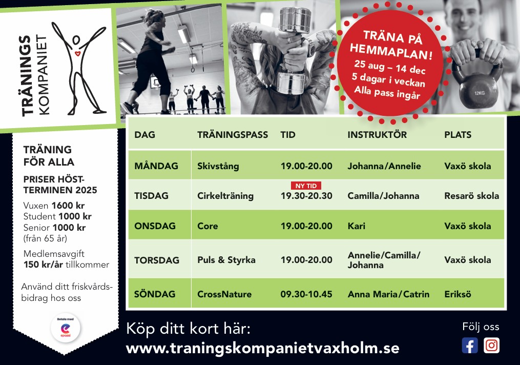 Måndagen den 25 augusti drar vi igång höstterminen på Träningskompaniet i Vaxholm.