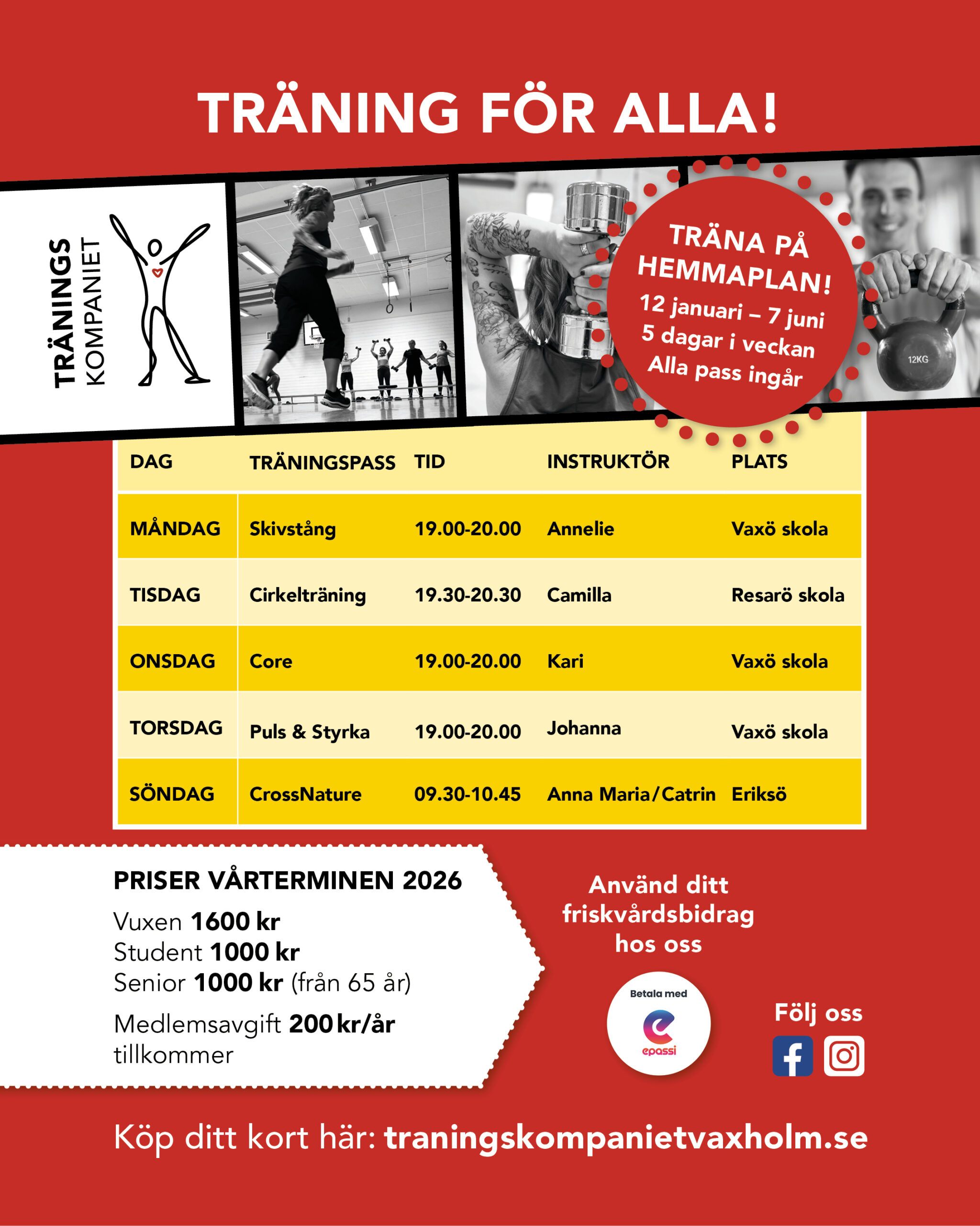 Måndagen den 25 augusti drar vi igång höstterminen på Träningskompaniet i Vaxholm.